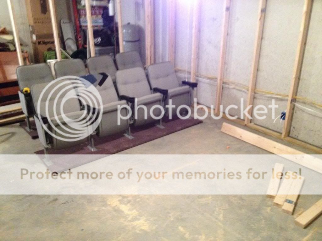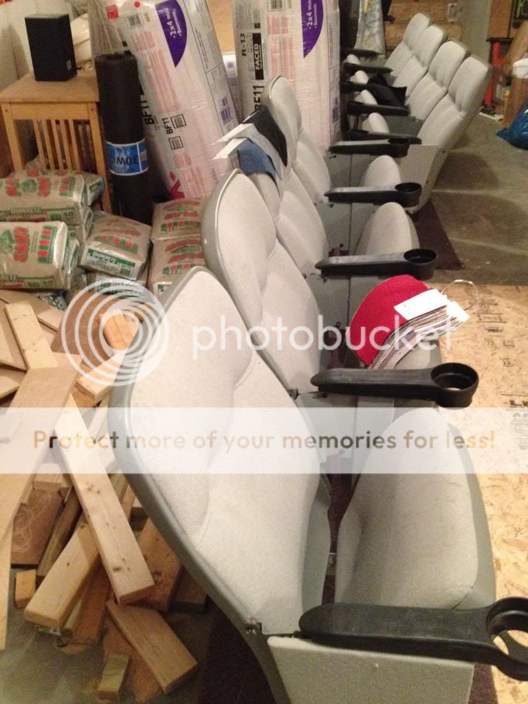 I'm going to build an 8' x 8' riser and push it to the back and one side of the HT. This will allow my in-swing door to fully open 90 degrees and will allow for the most seating. My seating plans are to get a reclining sofa for the front row and I'm still battling my decision for the back row. I've found some real theater seats locally on craigslist, but I'm sure they aren't all that comfortable. But at only $150 for two rows of 4, I may just buy them and see if I can squeeze both rows on my riser 8'x8'... Since the theater will be used by only me 60% of the time and by me, my wife and one son 25% more, with only the remaining 15% being for family gatherings and parties, the sofa will be the money seat while the back row(s) are "filler" seating. I may have just talked myself into buying those seats while typing this! :heehee: